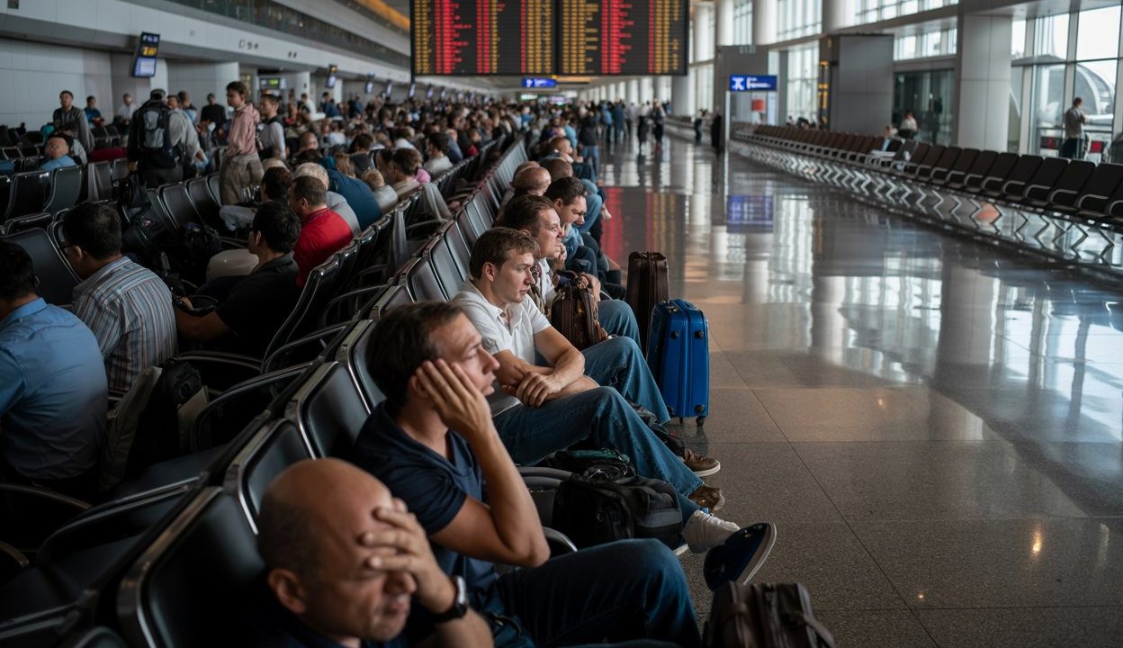 Around her, hundreds of other passengers stared at their phones, frantically trying to rebook flights that simply weren’t available. The airport’s usual buzz had turned into something closer to controlled chaos.