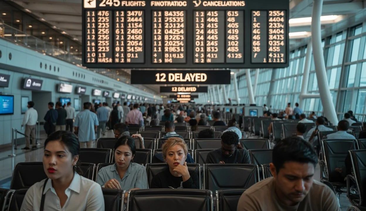 Fatima wasn’t alone. Across the gleaming terminals of one of the world’s most prestigious airports, hundreds of passengers found themselves in the same nightmare scenario as 245 flights were cancelled and another 12 faced indefinite delays.
