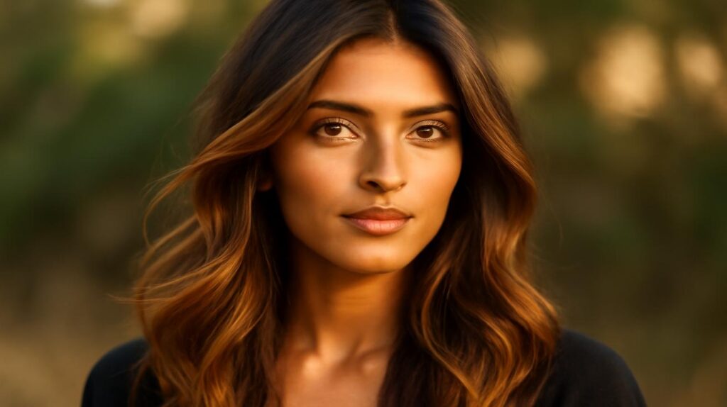 Fast-forward fifty years, and that same sun-kissed radiance is inspiring hair colorists worldwide. The “Indian sun” balayage trend is taking salons by storm this spring, promising to recreate that natural, healthy glow that comes from warm golden light dancing through rich, dark hair.